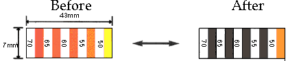 Sheets with a combination of reversible temperature indicating materials. There are two types: 2-temperature and 5-temperature. The 2-temperature sheet is suitable for indicating warning and danger temperatures. (P5¡¤7)The 5-temperature sheet is suitable for measuring temperature and checking for temperature increases. (C) Color-change temperatures and color-change tones are the same as for Number Thermo WappenTM.